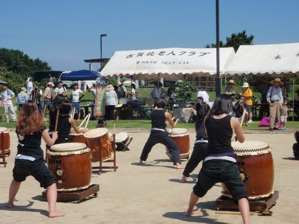 まずは、ボールを使った健康体操でストレッチ。体も気分もリラックスした後は、みなみ三郎ショーが始まりました。みなみ三郎さんは古賀市在住で、多岐にわたり活躍されています。懐かしい演歌や楽しい歌を聞き、最後は博多一本締めで祭りを終えました。』