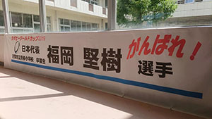 そして、さすがラグビー日本代表の福岡堅樹選手の母校です。応援の横断幕が設置されていました。現在開催中のラグビーの国際大会「パシフィック・ネーションズカップ」のフィジー戦とトンガ戦でもトライを決め、大活躍中の福岡選手。さらに応援の輪を広げていきましょう!