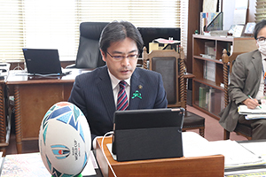 2019年のラグビーワールドカップのレガシーをこれからの地域振興につなげていくため、有志の地方自治体でつくる「ラグビーとの地域協創を推進する自治体連携協議会」が立ち上がり、福岡堅樹選手の出身地である古賀市としても率先して加入。2日、今年度総会が開催され、オンラインで参加しました。