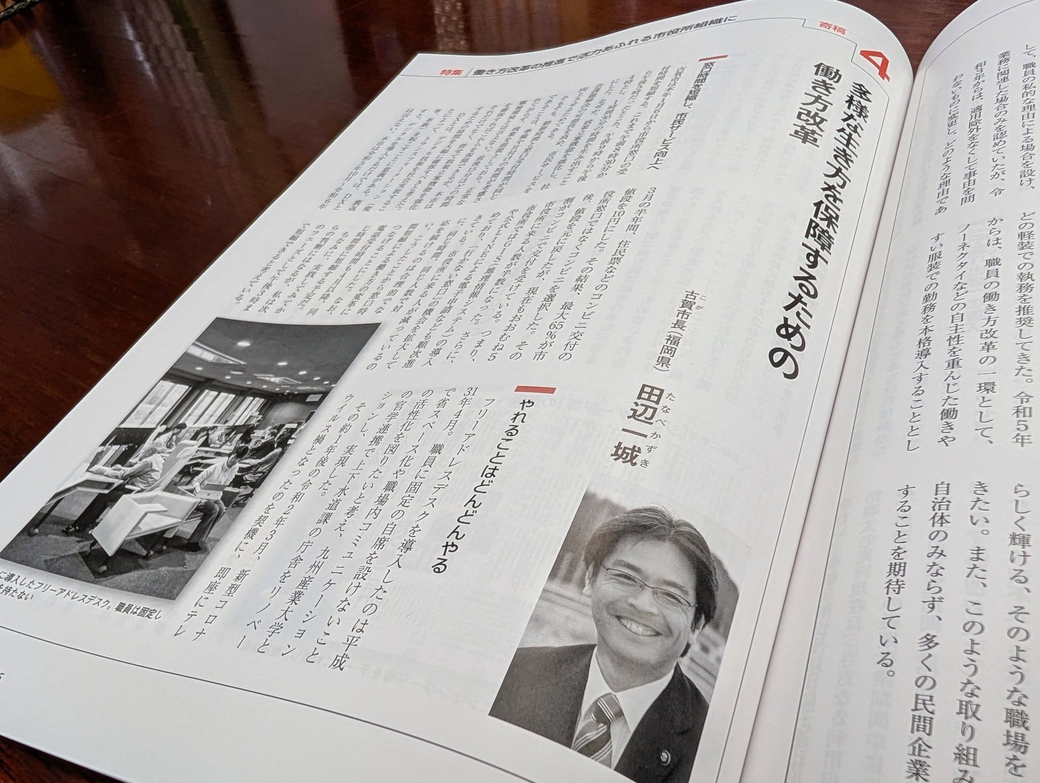 全国市長会の機関誌「市政」1月号の特集で寄稿文が掲載されました。「多様な働き方を保障するための働き方改革」として、3ページにわたって古賀市の取り組みを紹介しています。
