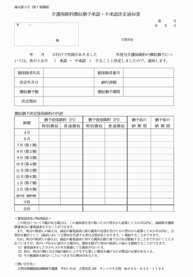 ○古賀市介護保険料の徴収猶予及び減免に関する要綱