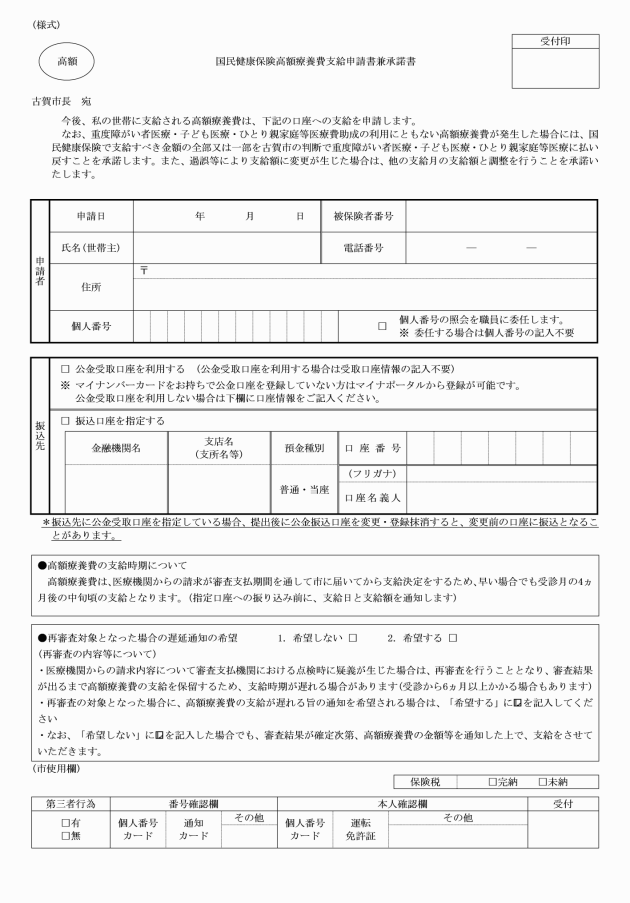 ○古賀市国民健康保険高額療養費支給申請手続の簡素化に関する要綱