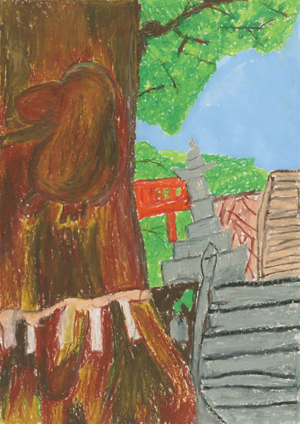 • リアルな木と神社