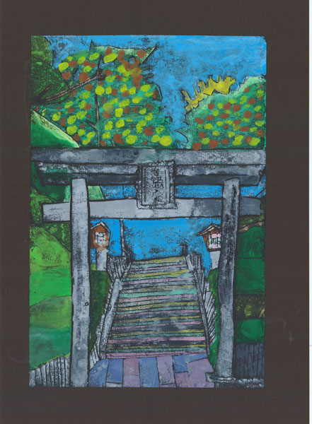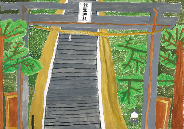 • 長いかいだんがあるししぶ山のじんじゃ