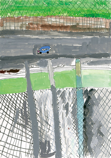 • 歩道橋からスケッチした電信柱