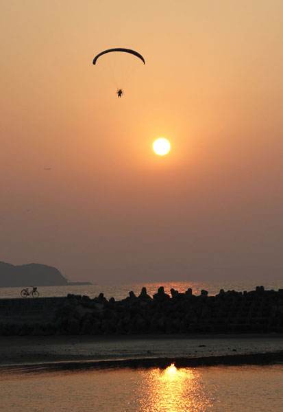 • 古賀海岸の入日