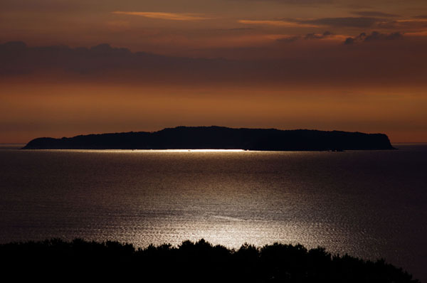 • あいの島にしずむ夕日