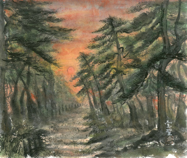 • 夕日に向かって