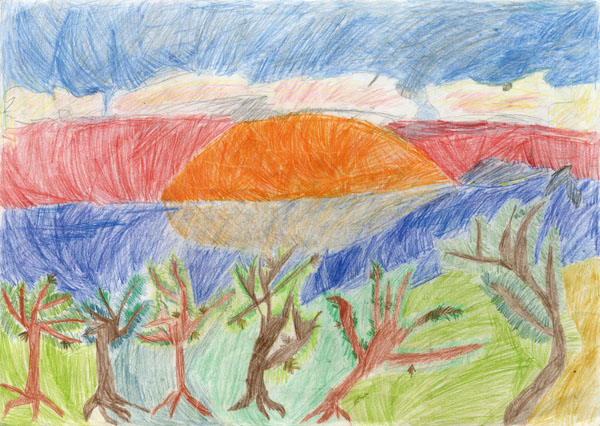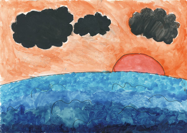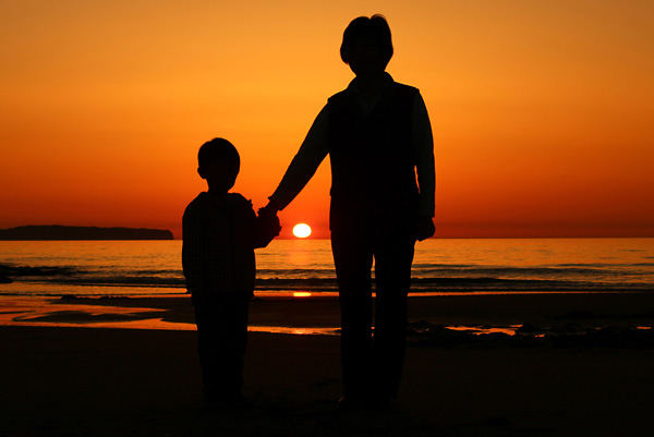 • 夕陽と少年