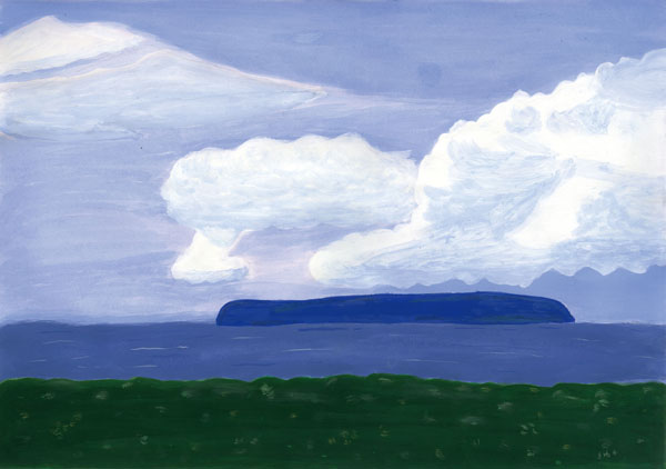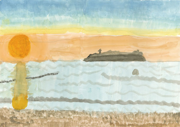 • {日没に浮く島]