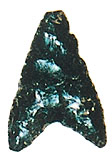 写真はガラス質の火山岩である黒耀石で作られた鏃(矢尻)で鋭い切り口を持っている。