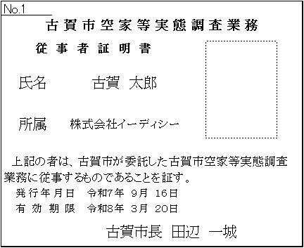 調査員は、古賀市発行の「調査員証」および「腕章」を携帯しています。